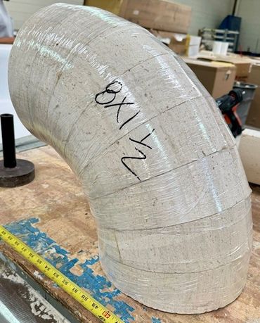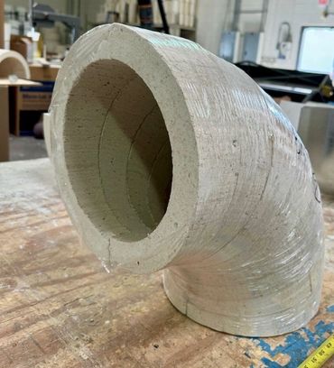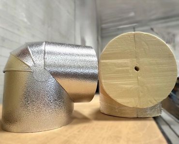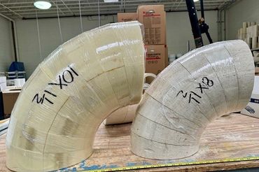Dynamic Fabrication’s custom designed and fit mitered elbows allow you to provide continuous insulation in the most demanding of applications. Allowing Dynamic Fabrication to produce these fittings, rather than fabricating them on-site, ensures a precise fit and reduces labor time in the field. Check out our helmet elbows for negative throat applications.